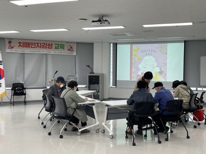 이번‘치매인지감성 교육’은 중산2동의 건강특화사업으로, 경도인지장애 대상자를 대상으로 치매 예방 및 지연을 위하여 그림책을 활용한 인지기능 향상 프로그램을 말한다.