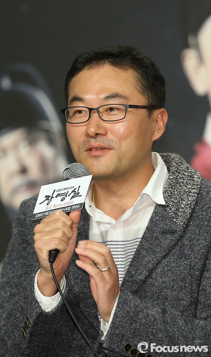 '장영실'은 노비였던 장영실(송일국 분)이 세종대왕(김상경 분)을 만나 15세기 조선의 과학을 세계 최고 수준으로 발전시키기까지의 과정을 그린 드라마. '근초고왕', '징비록'의 김영조 PD가 연출을 맡았다. 이명희 작가가 집필을 맡았다. 오는 1월 2일 오후 9시 40분 첫 방송.(서울=포커스뉴스) 28일 오후 서울 영등포구 타임스퀘어 아모리스홀에서 열린 KBS 1TV 대하드라마 '장영실' 제작발표회에 참석한 김영조 PD가 인사말을 하고 있다.대하드라마 '장영실'은 조선 최고의 과학자 장영실의 일대기를 그린 드라마로 2016년 1월 2일 첫방송 된다. 2015.12.28 김유근 기자
