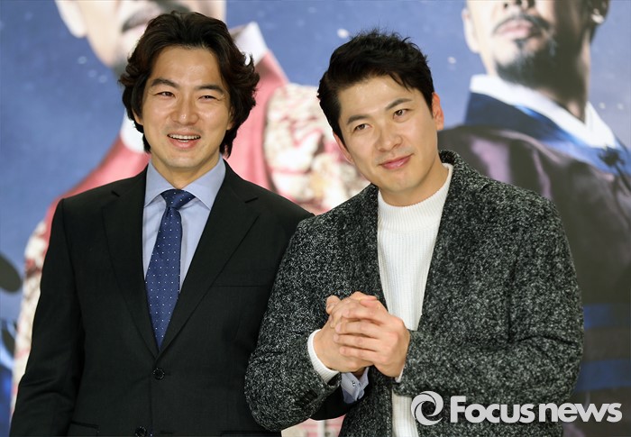 드라마 '장영실'은 노비 출신인 장영실이 세종을 만나 15세기 조선의 과학을 세계 최고 수준으로 발전시키는 과정을 그린다. '근초고왕', '징비록'의 김영조 PD가 연출을 맡았다. 집필은 이명희 작가가 맡았다. 다음달 2일 첫 방송된다.<서울=포커스뉴스> 배우 김상경(오른쪽)이 28일 서울 영등포구 타임스퀘어 아모리스홀에서 열린 KBS 1TV 대하드라마 '장영실' 제작발표회에서 송일국의 손을 꼭 잡고 포즈를 취하고 있다. 김유근 기자