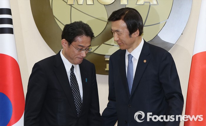 또 "평화비(위안부 소녀상)는 그 어떤 합의의 조건이나 수단이 될 수 없음을 분명히 한다"며 "한국 정부가 철거 및 이전을 운운하거나 개입하는 것은 있을 수 없다"고 못박았다.윤병세(왼쪽) 외교부 장관과 기시다 후미오 일본 외무상이 28일 오후 서울 종로구 외교부 청사에서 위안부 문제 해결 방안과 관련한 회담에 앞서 악수를 나눈 뒤 자리로 가고 있다. 2015.12.28 김흥구 기자