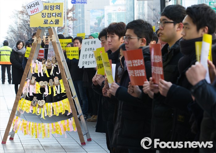서울대 로스쿨 1~2학년 재학생 300여명은 29일 오후 2시 서울 강남구 테헤란로에 위치한 대한변협 건물 앞에서 1시간동안 ‘희망의 사다리’ 퍼포먼스 등을 진행했다.
