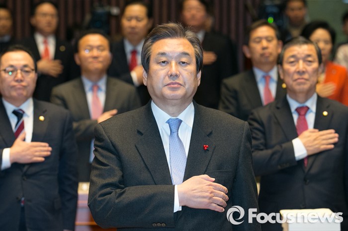 임시국회가 끝나는 1월8일까지 결론이 나지 않을 수도 있냐는 질문에는 "의장이 책임을 져야 한다"며 "입법비상사태가 선거구 획정만 비상사태냐. 실질적 민생법안을 못하는 것도 입법비상사태"라며 "본인이 안을 던졌는데도 야당의총이 무산돼고, 여당의총 최고위에서 못 받는다고 했다. (획정안이) 본회의에 올라가지도 못하는 상태"라고 했다.김무성 대표를 비롯한 새누리당 의원들이 28일 오후 서울 여의도 국회에서 열린 의원총회에 참석해 국민의례를하고 있다. 2015.12.28 박철중 기자