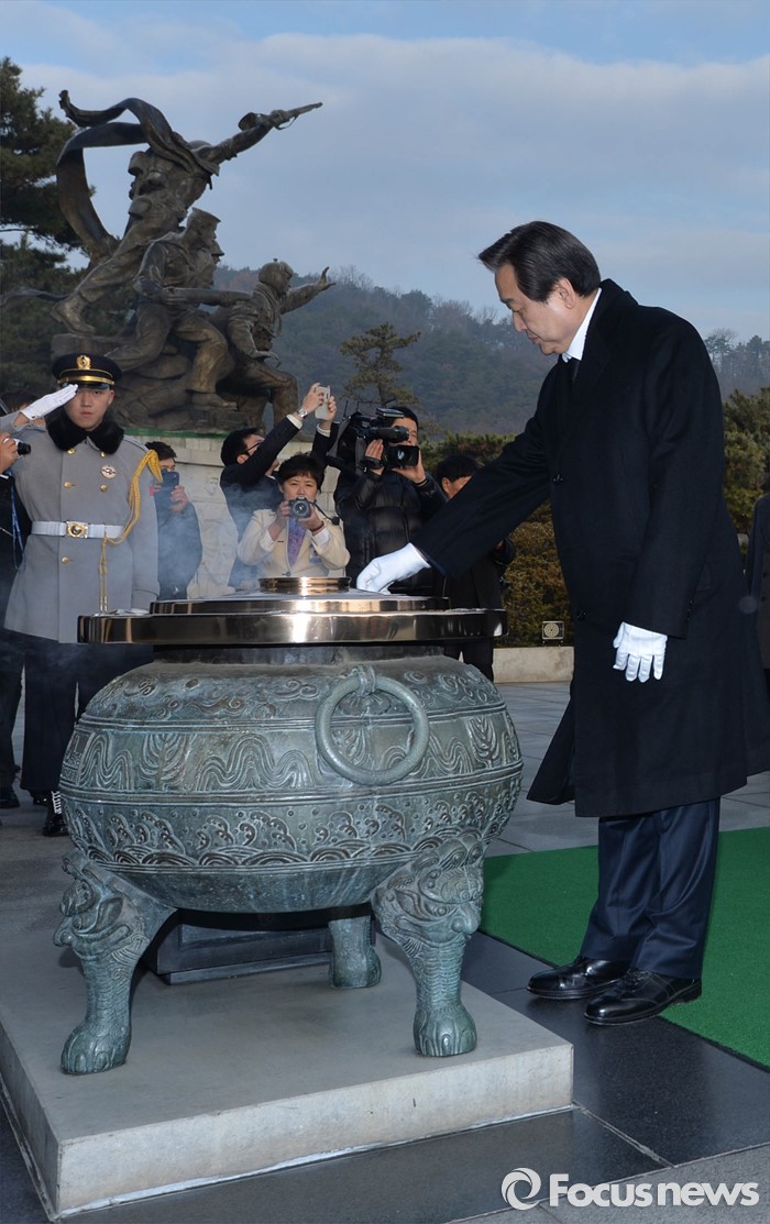 (서울=포커스뉴스) 병신년(丙申年) 새해 첫 날인 1일 오전 동작구 국립서울현충원에서 김무성 새누리당 대표 등 의원들이 현충탑 참배를 하고 있다.