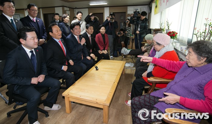 (광주=포커스뉴스) 병신년(丙申年) 새해 첫 날인 1일 오후 원유철 새누리당 원내대표 등 의원들이 경기도 광주 일본군 위안부 피해자 쉼터 나눔의 집을 방문해 할머니들과 간담회를 하고 있다.