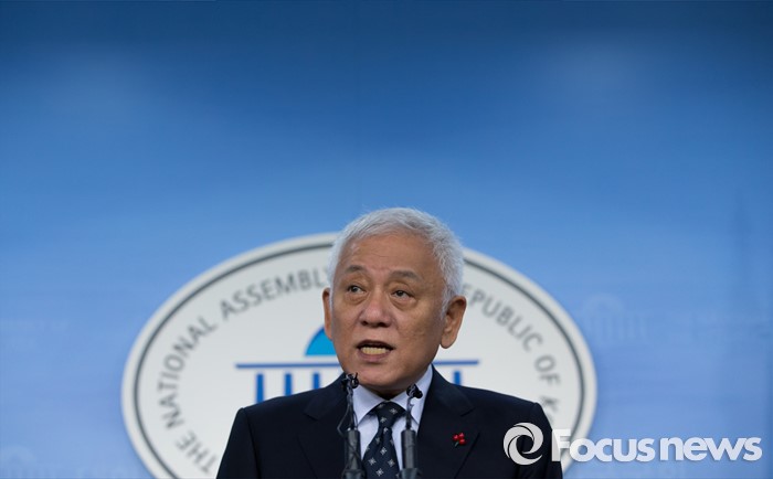 (서울=포커스뉴스) 김한길 더불어민주당 전 공동대표가 3일 오전 서울 여의도 국회 정론관에서 탈당 선언 기자회견을 하고 있다.
