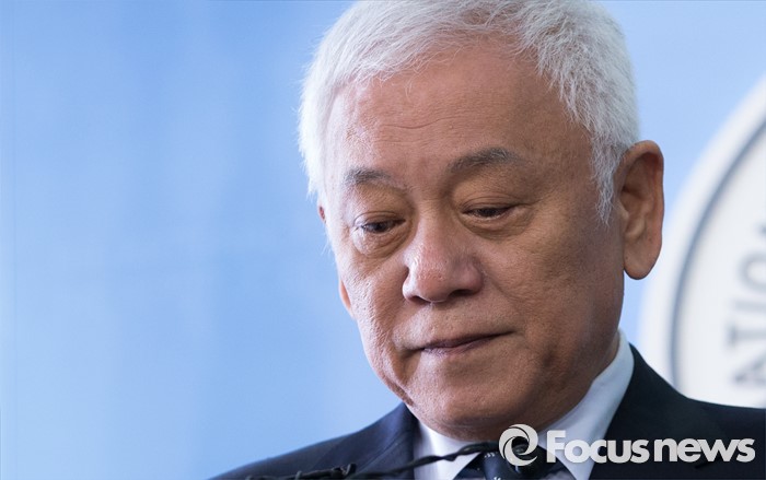 (서울=포커스뉴스) 김한길 더불어민주당 전 공동대표가 3일 오전 서울 여의도 국회 정론관에서 탈당 선언 기자회견을 하고 있다.