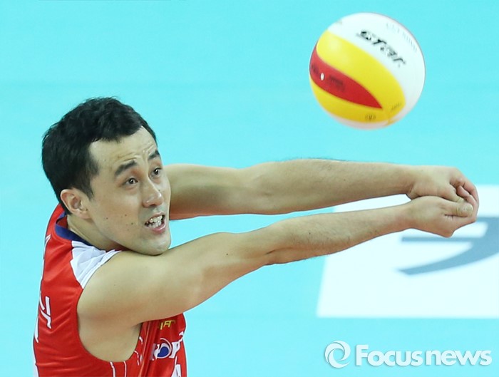 (인천=포커스뉴스) 3일 인천 계양체육관에서 열린 '2015-2016NH농협 V-리그' 남자부 대한항공-삼성화재 경기에서 대한항공 리베로 최부식이 정확한 리시브를 하고 있다.