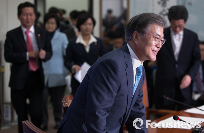 (서울=포커스뉴스) 문재인 더불어민주당 대표가 4일 오전 서울 여의도 국회에서 열린 최고위원회의에 참석하고 있다.