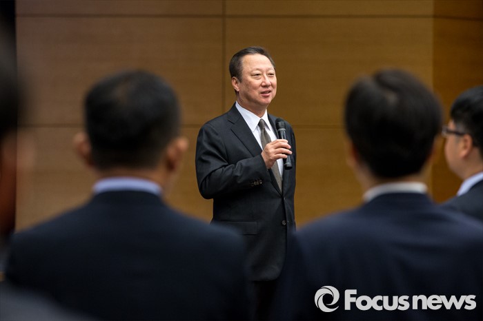 (서울=포커스뉴스) 박용만 대한상공회의소 회장이 4일 오전 서울 중구 대한상공회의소에서 열린 신녀인사회에 자리해 신년사를 하고 있다.