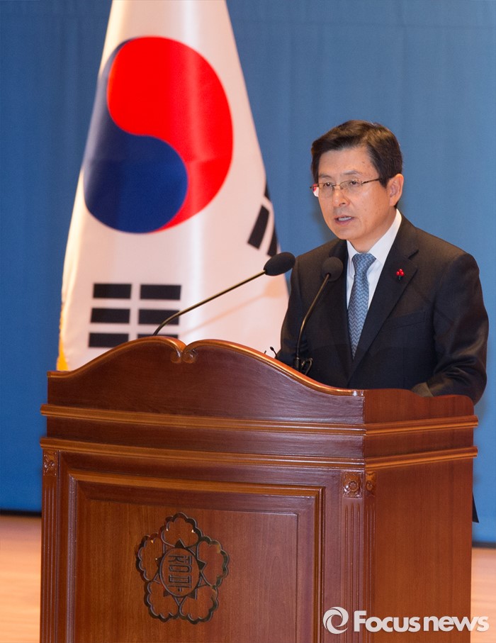 (세종=포커스뉴스) 황교안 국무총리가 4일 오전 세종시 정부세종청사 대강당에서 열린 2016년 정부시무식에 참석해 신년사를 하고 있다.