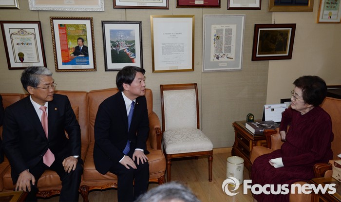 | △ 이희호 여사와 새해 인사 나누는 안철수 의원 |