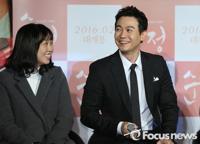 (서울=포커스뉴스) 4일 오전 서울 광진구 롯데시네마 건대입구점에서 열린 영화 '순정' 제작보고회에 자리한 배우 박용우(오른쪽)가 환한 웃고 있다.