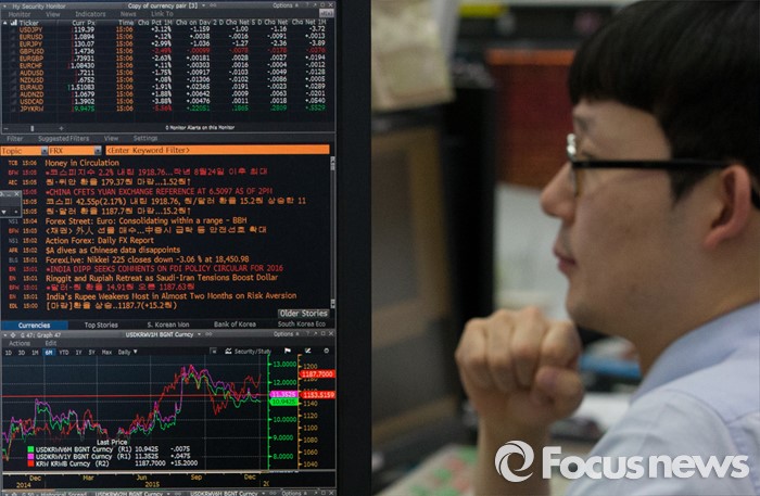 (서울=포커스뉴스) 새해 첫 거래일인 4일 원·달러 환율이 중국 증시 폭락 여파로 15.2원 급등한 1187.7원에 장을 마쳤다. 이날 서울 중구 을지로 KEB하나은행에서 딜러들이 업무를 보고 있다.