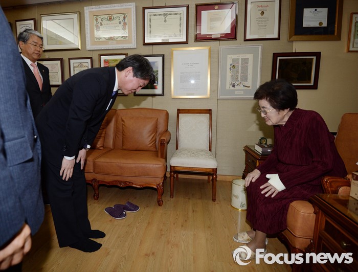 (서울=포커스뉴스) 고(故) 김대중 전 대통령의 부인 이희호 여사가 4일 신당 창당을 추진중인 무소속 안철수 의원에게 "앞으로 만드는 정당이 정권교체를 하는 데 중요한 역할을 하도록 많은 기대를 갖고 있다"고 말했다.