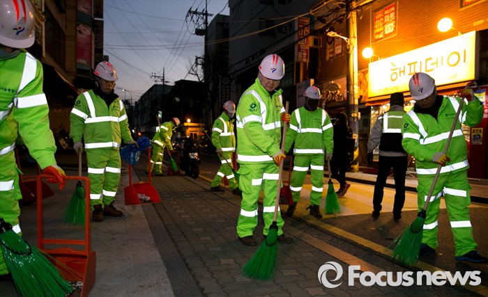 (서울=포커스뉴스) 신당 창당을 추진 중인 안철수 무소속 의원이 5일 오전 서울 영등포역 동부광장 인근에서 환경미화원들과 함께 새해맞이 청소를 하고 있다.
