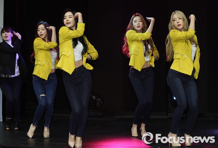 (서울=포커스뉴스) 5일 오후 서울 강남구 일지아트홀에서 열린 걸그룹 달샤벳의 9번째 미니앨범 'NATURALNESS' 발표 쇼케이스에 참석한 멤버 세리(왼쪽부터), 우희, 수빈, 아영이 신곡 '너같은'의 무대를 선보이고 있다.