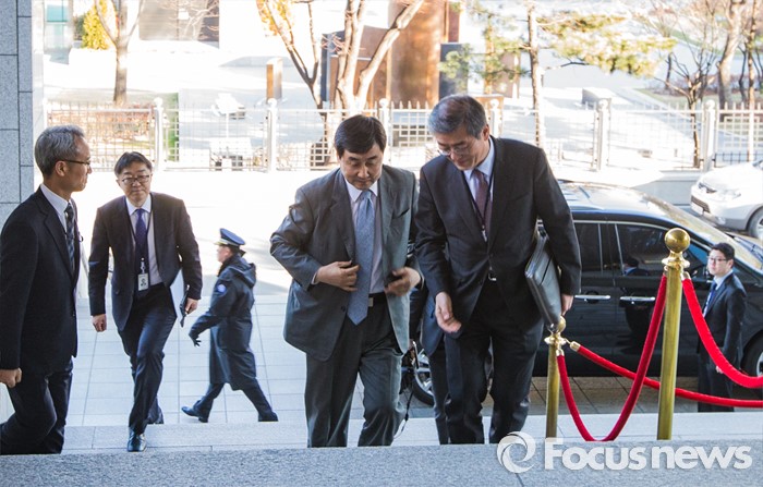 (서울=포커스뉴스) 이종걸(오른쪽 두번째) 더불어민주당 원내대표가 한일간 위안부 협상과 관련해 5일 오후 서울 종로구 외교부 청사를 항의 방문하고 있다.