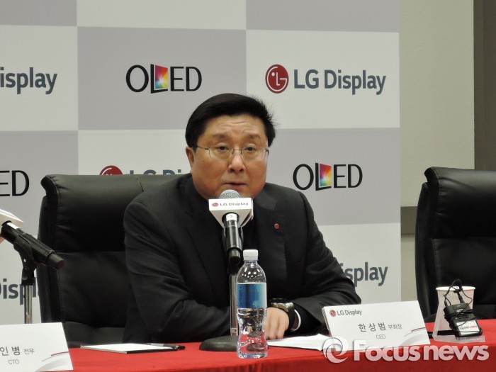 한상범 LG디스플레이 부회장(대표이사)이 세계 최대 가전쇼 'CES 2016'을 하루 앞둔 5일(현지시간) 개최한 기자간담회에서 경쟁사인 삼성전자 제품을 겨냥해 날을 세웠다.