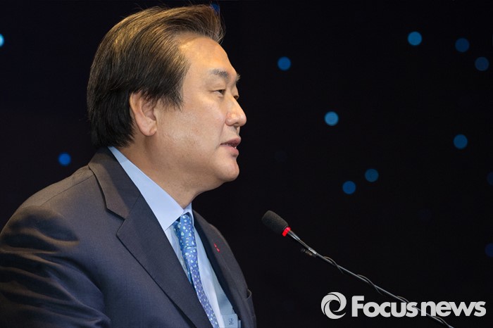 (서울=포커스뉴스) 김무성 새누리당 대표가 서울 영등포구 글래드호텔에서 열린 대한민국헌정회 신년인사모임에 참석해 새해인사를 하고 있다.