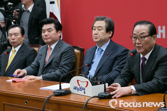 (서울=포커스뉴스) 서청원(오른쪽) 새누리당 최고위원이 6일 오후 서울 여의도 국회 대표최고위원실에서 열린 북한 핵실험 관련 긴급대책회의에 참석해 발언하고 있다.