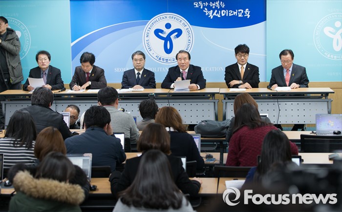 이날 기자회견에는 조희연 서울교육감, 이재정 경기교육감, 이청연 인천교육감, 장휘국 광주교육감, 민병희 강원교육감, 김승환 전북교육감 등이 참석했다.6일 오후 서울 종로구 서울시교육청에서 전국 시도교육감이 정부의 누리과정 예산 미편성 시 강력 대처 발표와 관련해 긴급 기자회견을 하고 있다. 왼쪽부터 조희연 서울시교육감, 김승환 전라북도교육감, 이재정 경기도교육감, 장휘국 광주시교육감, 이청연 인천시교육감, 민병희 강원도교육감.2016.01.06 김인철 기자