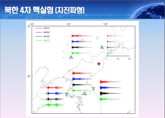 (서울=포커스뉴스) 북한이 4차 핵실험을 감행한 6일 오후 대전 유성구 한국지질자원연구원 지진연구센터에서 공개한 북한 4차 핵실험 지진파형 데이터. <사진제공=한국지질자원연구원 지진연구센터>