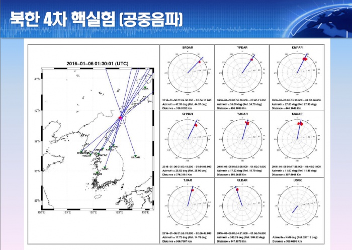 (서울=포커스뉴스) 북한이 4차 핵실험을 감행한 6일 오후 대전 유성구 한국지질자원연구원 지진연구센터에서 공개한 북한 4차 핵실험 공중음파 자료. <사진제공=한국지질자원연구원 지진연구센터>