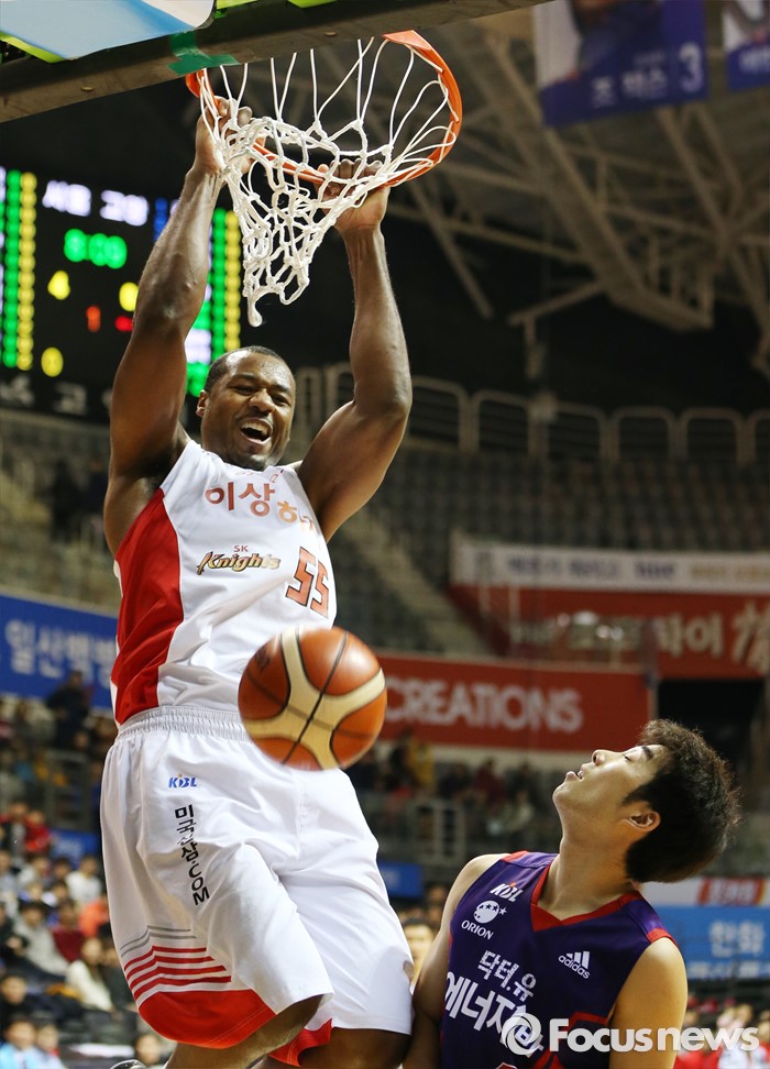 (고양=포커스뉴스) 6일 고양체육관에서 열린 2015-2016 프로농구 오리온-SK 경기에서 SK 사이먼이 덩크슛을 성공시키고 있다.