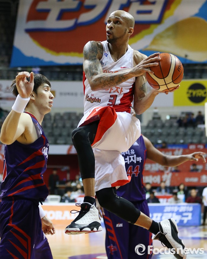 (고양=포커스뉴스) 6일 고양체육관에서 열린 2015-2016 프로농구 오리온-SK 경기에서 SK 스펜서가 오리온 장재석을 앞에 두고 레이업슛을 시도하고 있다.