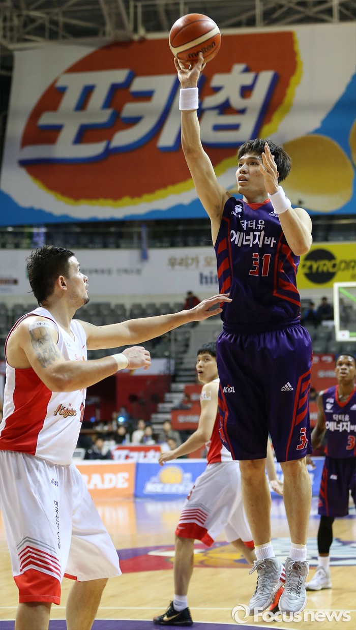 (고양=포커스뉴스) 6일 고양체육관에서 열린 2015-2016 프로농구 오리온-SK 경기에서 오리온 장재석이 SK 김민수를 앞에 두고 점프슛을 시도하고 있다.