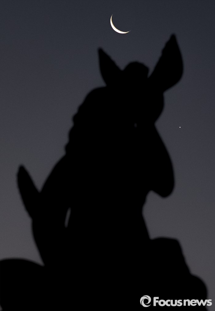 (서울=포커스뉴스) 7일 오전 서울 여의도 국회에서 바라본 하늘에 그믐달과 함께 샛별이 빛나고 있다.