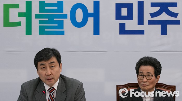(서울=포커스뉴스) 이종걸 더불어민주당 원내대표가 7일 오전 서울 여의도 국회에서 열린 정책조정회의에 참석해 모두발언을 하고 있다. 오른쪽은 이목희 정책위의장.