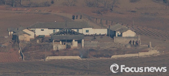 (파주=포커스뉴스) 7일 오전 경기도 파주 오두산 통일전망대에서 북한 황해북도 개풍군 마을에서 주민들이 관측되고 있다.