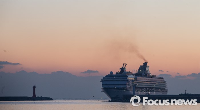 (동해=포커스뉴스) 7일 오전 강원 동해항 중앙부두에 중국 천해크루즈사의 스카이씨 골든 에라호가 승객 1천800여 명을 싣고 입항하고 있다. 이날 강원도를 찾은 관광객들은 정선 강원랜드 눈썰매장, 평창 용평·알펜시아스키장, 속초 중앙시장, 설악산 등을 둘러본 후 오후 5시에 일본으로 향할 예정이다.
