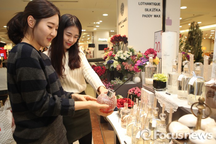 하영수 생활가전부문장은 “지속적인 경기불황과 1인 가구의 증가로 홈 퍼니싱 상품의 구매가 늘어날 것으로 예상하고 있다”며 “이에 디퓨저, 램프 등 작은 소품으로 집안 분위기를 바꿀 수 있는 다양한 상품을 선보이는 행사를 기획했다”고 말했다.롯데백화점 소공동 본점 에르베감스 매장에서 소비자들이 디퓨저를 고르고 있다.<사진제공=롯데백화점>
