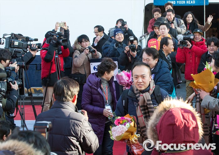 (동해=포커스뉴스) 7일 오전 강원 동해항 중앙부두에 입항한 중국 천해크루즈사의 스카이씨 골든 에라호에서 중국인 관광객들이 하선하고 있다. 이날 강원도를 찾은 관광객 1천800여 명은 정선 강원랜드 눈썰매장, 평창 용평·알펜시아스키장, 속초 중앙시장, 설악산 등을 둘러볼 예정이다.