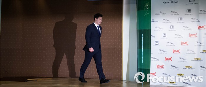 (서울=포커스뉴스) 미네소타 트윈스에 입단한 박병호가 7일 오전 서울 서대문구 그랜드힐튼호텔에서 열린 기자회견장으로 들어서고 있다.