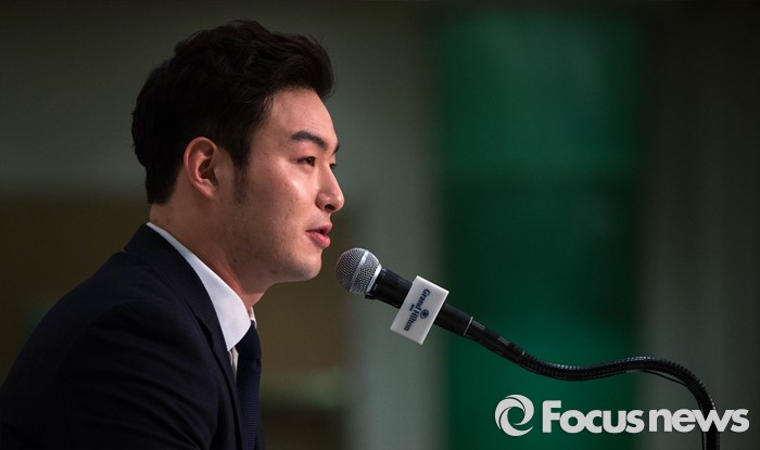 (서울=포커스뉴스) 미네소타 트윈스에 입단한 박병호가 7일 오전 서울 서대문구 그랜드힐튼호텔에서 기자회견을 열고 메이저리그 진출에 대한 소감과 포부를 밝히고 있다.