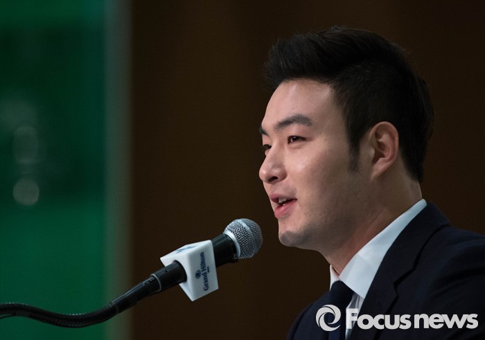 (서울=포커스뉴스) 미네소타 트윈스에 입단한 박병호가 7일 오전 서울 서대문구 그랜드힐튼호텔에서 기자회견을 열고 메이저리그 진출에 대한 소감과 포부를 밝히고 있다.