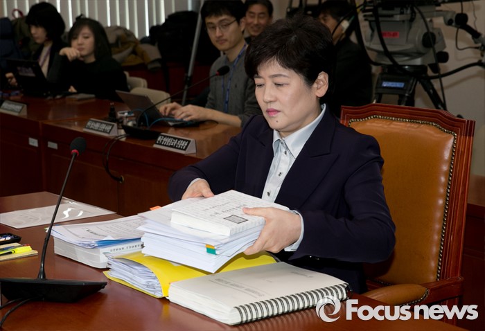 (서울=포커스뉴스) 강은희 여성가족부 장관 후보자가 7일 오전 서울 여의도 국회에서 열린 인사청문회에 참석해 준비를 하고 있다.