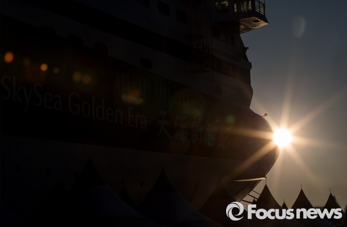 (동해=포커스뉴스) 7일 오전 강원 동해항 중앙부두에 중국 천해크루즈사의 스카이씨 골든 에라호가 승객 1천800여 명을 싣고 입항하고 있다.