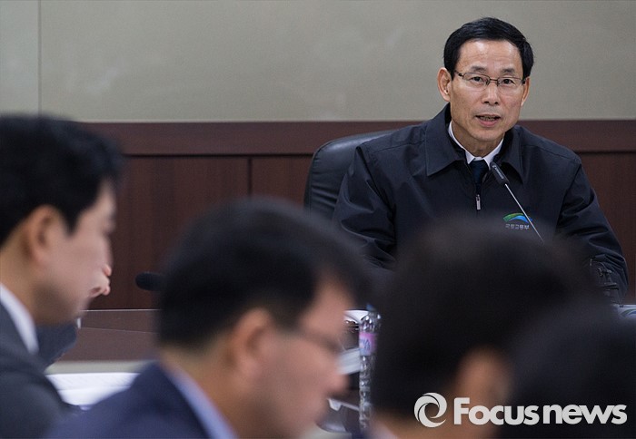 (서울=포커스뉴스) 최정호 국토교통부 2차관이 8일 오전 서울 강서구 한국공항공사 대회의실에서 열린 저비용항공사(LCC) 긴급 안전점검회의에 참석해 모두발언 하고 있다.
