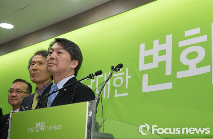 (서울=포커스뉴스) 안철수(오른쪽) 무소속 의원이 8일 오후 서울 마포구 안철수 무소속 의원 당사에서 신당 당명 '국민의당'을 발표하고 있다.
