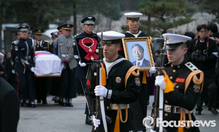 추모예배는 이영훈 한국기독교총연합회 회장의 설교와 추도로 진행될 예정이다 .故 김영삼 전 대통령의 안장식이 열린 26일 오후 서울 동작구 국립현충원에서 故 김 전 대통령의 관이 운구되고 있다.2015.11.26 사진공동취재단