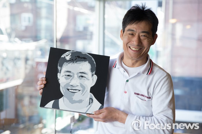 (서울=포커스뉴스)8일 오전 서울 성북구 '영철버거'에서 이영철 사장이 인터뷰 중 손님이 선물한 그림을 들어 보이고 있다. 고려대 앞 명물로 꼽히는 '영철버거'가 최근 경영난으로 문을 닫았다가, 고려대를 다녔던 학생들이 영철버거와의 추억을 잊지 못해 십시일반 도와 가게를 옮겨 재오픈 했다.
