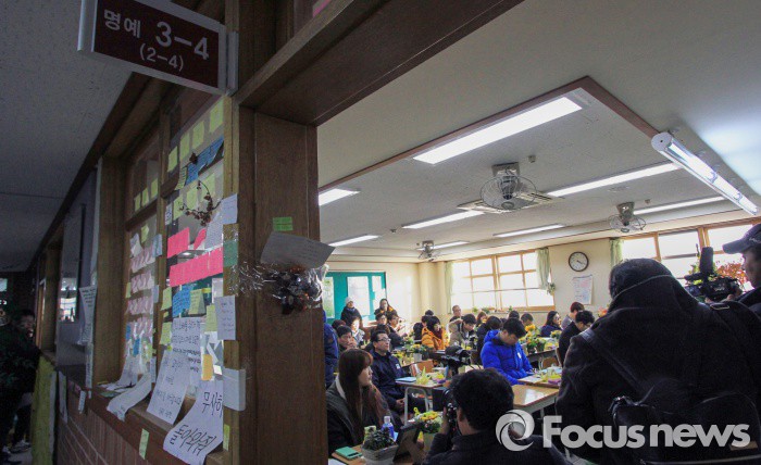 (안산=포커스뉴스) 10일 오후 경기도 안산 단원고 '4.16 기억의 교실'에서 유가족과 시민단체레서마련한세월호 참사 희생학생들을 위한 겨울방학식이 열리고 있다. 안산단원고 세월호 피해자 모임인 4.16 유가족협의회 회원들은12일로 예정된 단원고 졸업식에 불참하는 대신 시민들과 2014년 4월 16일 세월호 참사로 희생된 학생과 교사들이 사용하던 교실과 교무실인 '4.16 기억의 교실'에서 명예 3학년 1반부터 10반 교실까지 자리 앉기, 출석 부르기, 방학식 메시지, 안산분향소 방문 등 순으로 방학식을 진행했다. <사진제공= 이관희사진가>