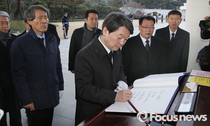 (서울=포커스뉴스) '국민의당' 창당을 준비중인 안철수 의원이 11일 오전 동작구 국립서울현충원 현충탑을 참배한 뒤 방명록을 작성하고 있다.
