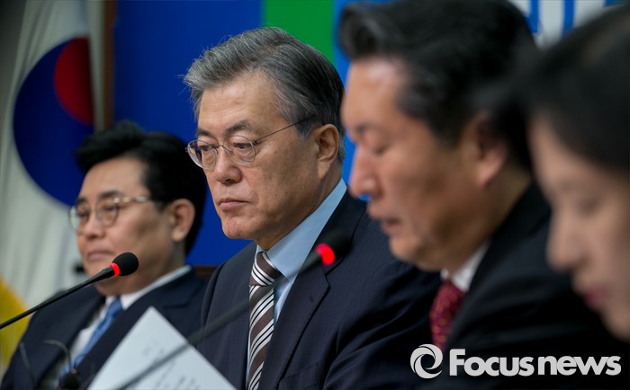 (서울=포커스뉴스) 문재인(왼쪽 두번째) 더불어민주당 대표가 11일 오전 서울 여의도 국회에서 열린 최고위원회의에 참석해 최고위원들의 발언을 듣고 있다.