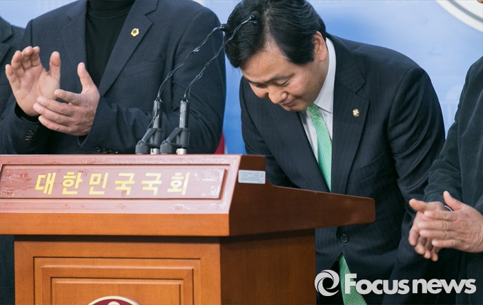 (서울=포커스뉴스) 김관영 더불어민주당 의원이 11일 오전 서울 여의도 국회 정론관에서 기자회견을 통해 탈당 표명 후, 인사하고 있다.