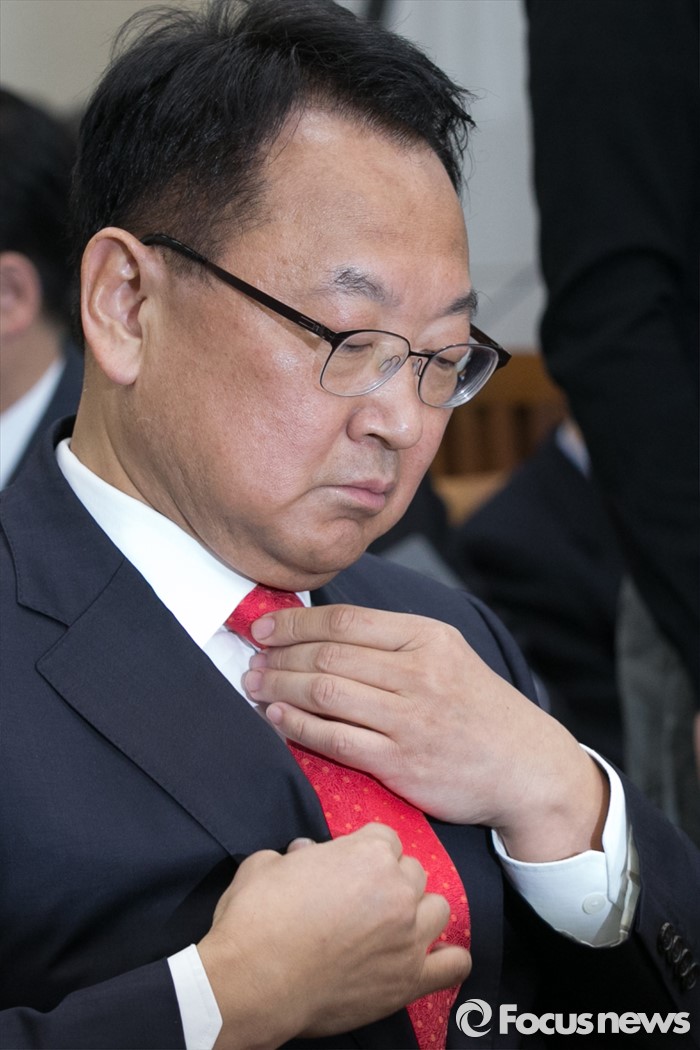 (서울=포커스뉴스) 유일호 경제부총리 겸 기획재정부 장관 후보자가 11일 오전 서울 여의도 국회 기획재정위원회 전체회의장에서 열린 인사청문회에 출석해 넥타이를 만지고 있다.